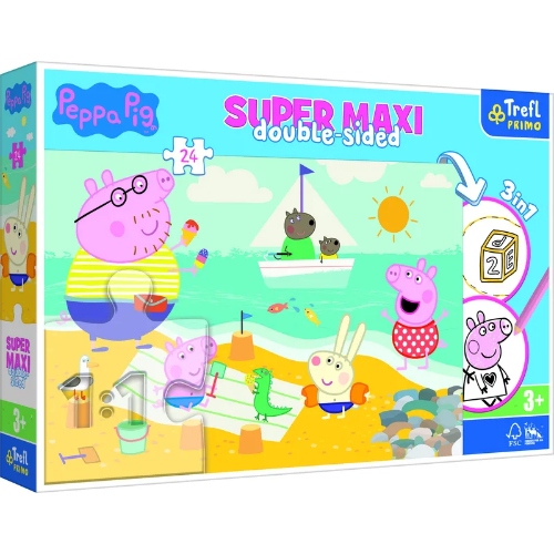 Puzzle Trefl PRIMO – Super Maxi 24 c’est 3 jeux en un seul produit : un grand puzzle de 24 pièces ainsi qu’un livre de coloriage et un jeu avec des éléments à colorier au dos du puzzle !Après avoir assemblé le puzzle, une grande image de 600×400 mm sera formée.Des couleurs vives et des formes de puz