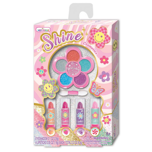 Cet ensemble brillant et parfumé est tout simplement parfait pour les meilleurs relookings ! Brillez comme un diamant avec des cosmétiques amusants à paillettes !Contient :1 palette de fards à paupières,4 rouges à lèvres