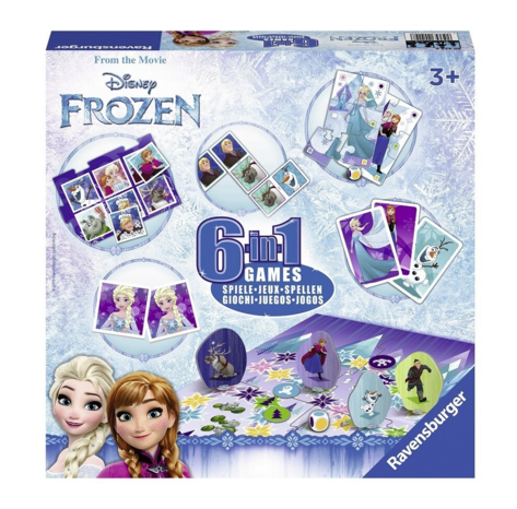 Jeux 6-en-1 La Reine des neiges de DisneyIl y en a pour tous les goûts dans le jeu Disney Frozen 6 en 1 !Six classiques n’attendent que vous et vos amis pour les découvrir. Jouez aux dominos, tentez votre chance au Bingo et faites travailler votre mémoire avec Matching.Mieux encore, les cartes et ac