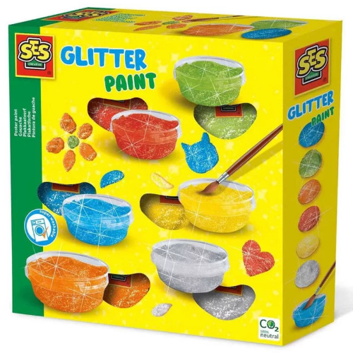 Crée de magnifiques œuvres d’art à paillettes avec la gouache de SES. Ce kit contient six couleurs vives de gouache pailletée. Des paillettes bleues, vertes, rouges, etc., qui donneront encore plus d’éclat à toutes tes créations ! La gouache de SES est facile à éliminer de la plupart des tissus !