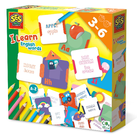 Envie d’apprendre de nouveaux mots anglais ? C’est possible avec ce joli jeu illustré de I learn ! Associe les autocollants colorés aux initiales correspondantes, puis trouve les cartes avec les mots. Place les cartes dans le bon ordre. Si tu as formé le bon mot, les zones colorées correspondantes s