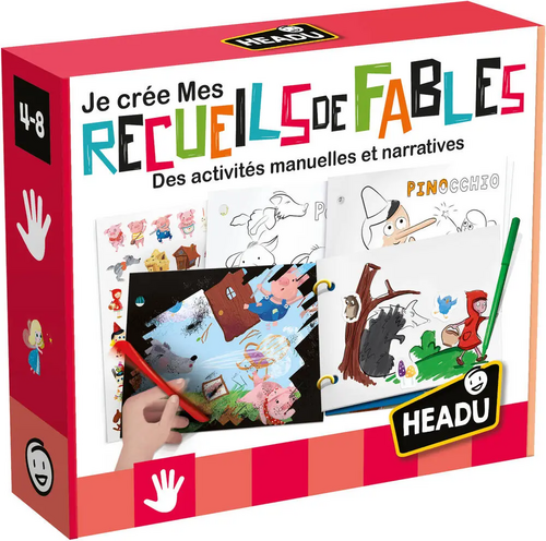Des activités manuelles et narrativesDécouvre les dessins cachés en grattant les planches avec le stylo spécial. Observe les séquences des fables et construis trois livres personnalisés avec le kit fourni dans la boîte !