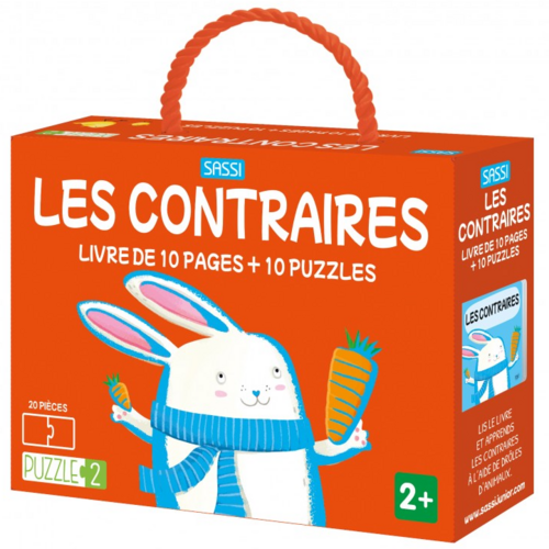 Apprends les contraires avec la nouvelle édition de la série Puzzle 2 ! Lis le livre, puis apprends les contraires en assemblant les 10 mini-puzzles de deux pièces