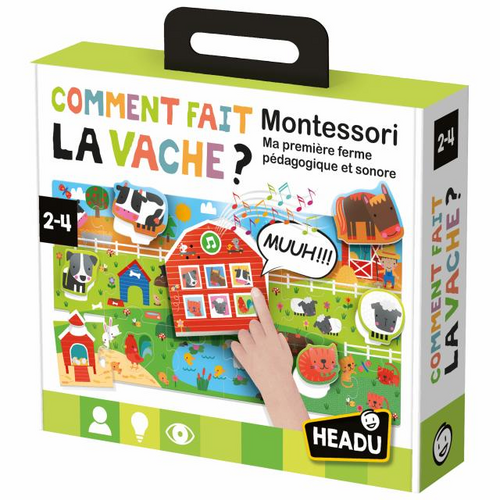 Quel est le cri du cheval ? Ecoute-le ! Et de la vache ? Voici un jeu qui permet aux enfants d’associer les animaux à leurs cris, d’écouter les bruits caractéristiques de la ferme et de les associer aux silhouettes représentées sur un grand puzzle-environnement coloré.Intelligences personnellesMonde
