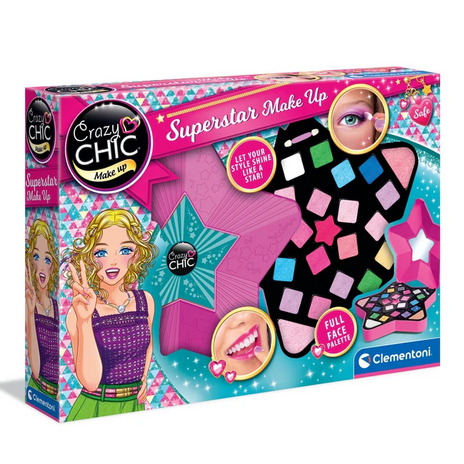 Une trousse de maquillage scintillante en forme d’étoile pour créer un look unique et briller comme une vraie star !Le sac contient : du brillant à lèvres, des ombres à paupières, du fond de teint et 2 applicateurs.Comprend également un miroir en forme d’étoile.L’étoile est conçue pour être un bel o