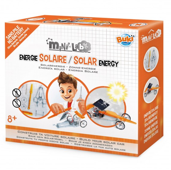 Assemble les pièces de la voiture avec le tournevis, puis fais-la avancer grâce à l’énergie du soleil.