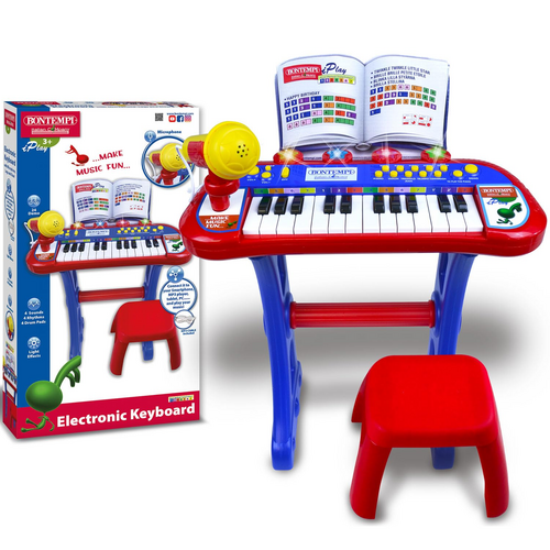Clavier électronique de 24 touches avec micro, pieds et tabouret • 4 sons • 4 Rythmes avec arrangement • 4 percussions • 4 Rythmes avec percussions • Effets lumineux • 24 démos • OKON (Fonction d’apprentissage) • Réglage du volume • Prise pour source musicale externe (lecteur MP3, smartphone etc.) –