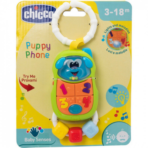 Mélodies et lumièresForme drôle de chiotClavier pour jouerCubes coulissantsComplet avec crochet pour installation sur la poussette 3m+