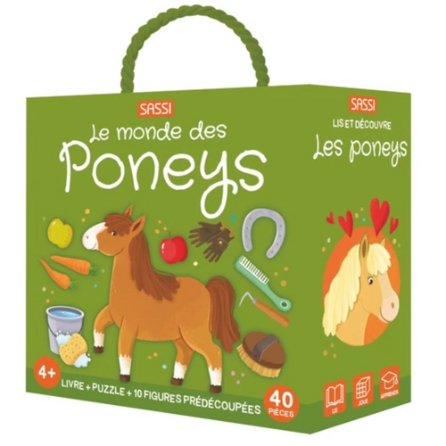 Découvre le monde des poneysExplore le monde merveilleux des poneys avec notre boîte éducative. Conçue pour stimuler l’apprentissage et la curiosité, cette boîte contient un livre fascinant et un puzzle captivant. Chaque élément est soigneusement illustré pour aider les enfants à reconnaître et à as