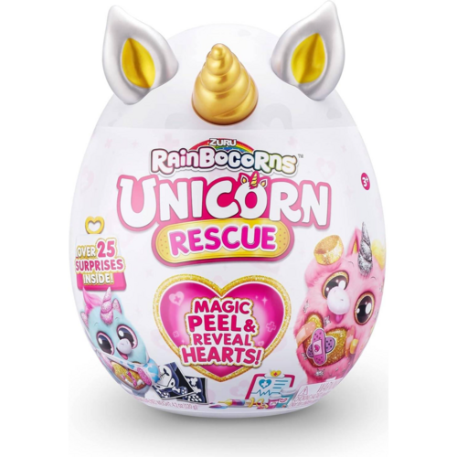 Câlinez et redonnez la santé à ces amis tout doux avec le Sauvetage des Licornes Rainbocorns ! À Rainboville, certains de nos amis ne se sentent pas très bien et ont besoin de vos câlins et de vos bisous pour les sauver ! Faites éclore votre Rainbocorn pour révéler votre peluche malade et plus de 25