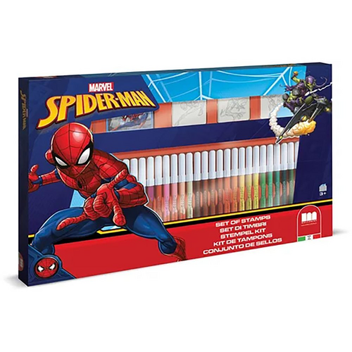 Coffret contenant :3 tampons en bois ,36 feutres lavables Giotto,1 cahier d’activités (20 pages, dimensions 15.50 x 10 x 0.2 cm),1 tampon encreur avec encre bleue lavable et non toxique.Fabriqué en Italie