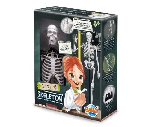 Un squelette de 45 cm à assembler pour découvrir l’anatomie.Les os ont une texture et des couleurs réalistes. Le squelette est entièrement articulé et l’enfant peut le placer dans différentes positions.Une base est fournie pour l’installer sur un bureau.L’enfant place des étiquettes sur les os pour