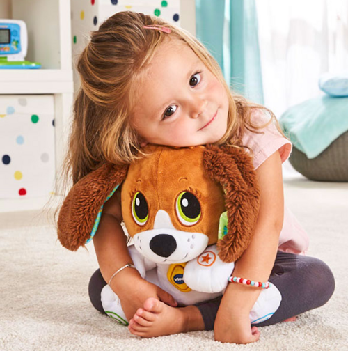 Ce chien peluche tout doux est interactif : ilrépète ce que l’enfant lui diten déformant sa voix et ses oreilles bougent en rythme.Toutou, ce chien rigolo, est parfait pour développer l’apprentissage du langage, des chiffres, des couleurs, des émotions et de la motricité de votre enfant de façon lud