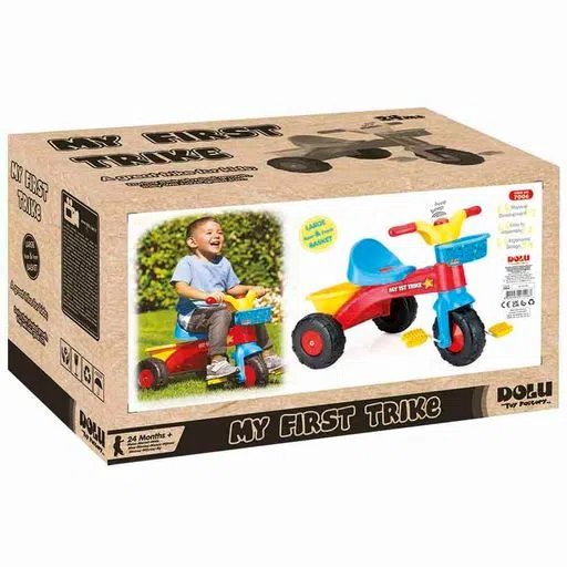 Tricycle avec contrôle parental et système roue libre de la marque Dolu. Couleur rouge et bleu avec panier avant et arrière. Age à partir de 2 ans. La marque Dolu produit aussi d’autres articles pour le jeu à l’exterieur . L’utilisation d’un tricycle permet aux plus jeunes de prendre confiance en eux et les encourage à aller à la découverte du monde qui les entoure. Favorisant la prise d’initiative et développant l’équilibre, le tricycle est également un véritable tremplin vers l’apprentissage du vélo. Ce vélo avec contrôle parental permet aussi d’emmener l’enfant en promenade avec les parents en le poussant à partir de 2 ans sans que l’enfant sache encore pédaler! Le mécanisme roues libres empêche les roues de tourner pendant que les parents poussent! Pour un enfant, le tricycle n’est pas seulement un jouet. C’est également un véritable instrument d’apprentissage. Une petite balade à roulette permet à votre enfant de découvrir et d’appréhender son environnement avec plus de facilité et de sécurité. Les avantages du tricycle pour votre bout de chou concernent surtout son développement psychomoteur. Ces avantages sont généralement évalués en fonction de l’âge et de la taille de votre enfant. Souvent, des enfants du même âge ont des aptitudes et des capacités différentes. Même si chaque enfant possède son propre rythme, le tricycle permet de lui apprendre le sens de l’orientation et de la coordination. En effet, le système de pédalage facilite la synchronisation des mouvements du corps et des capacités motrices de votre enfant. Avec le beau temps c’est le moment du Tricycle avec contrôle parental de Dolu! Achetez et commandez en ligne ou découvrez ce jouet dans notre magasin à Tunis, Tunisie. Pour plus d’informations visiter le site officiel Dolu